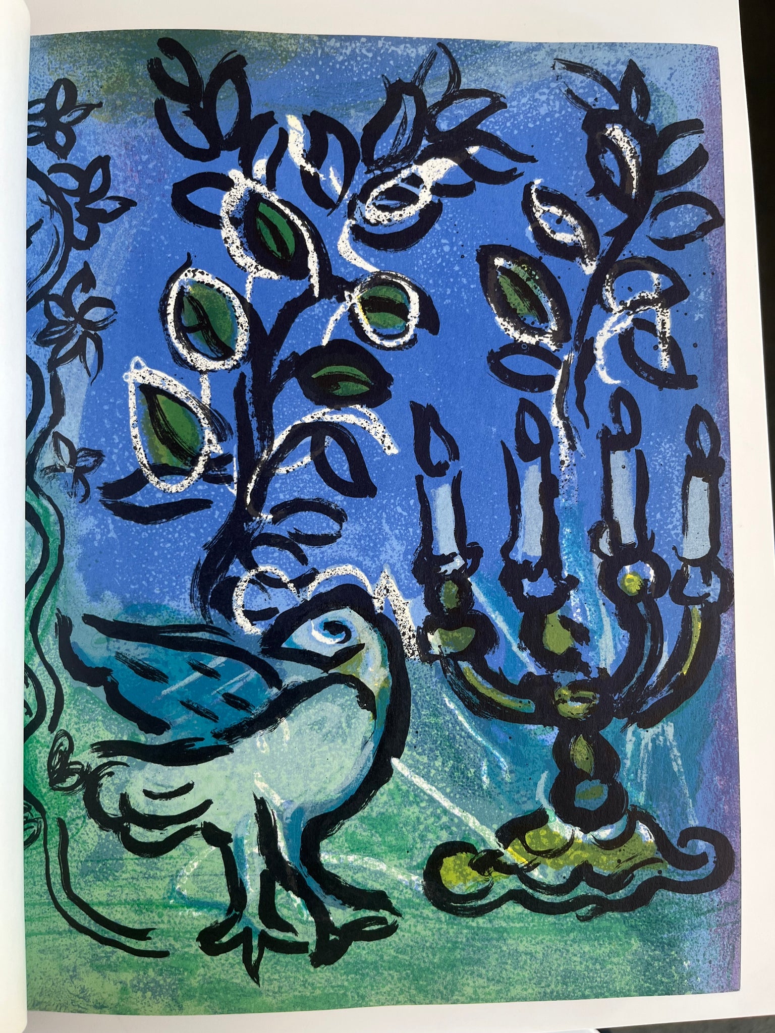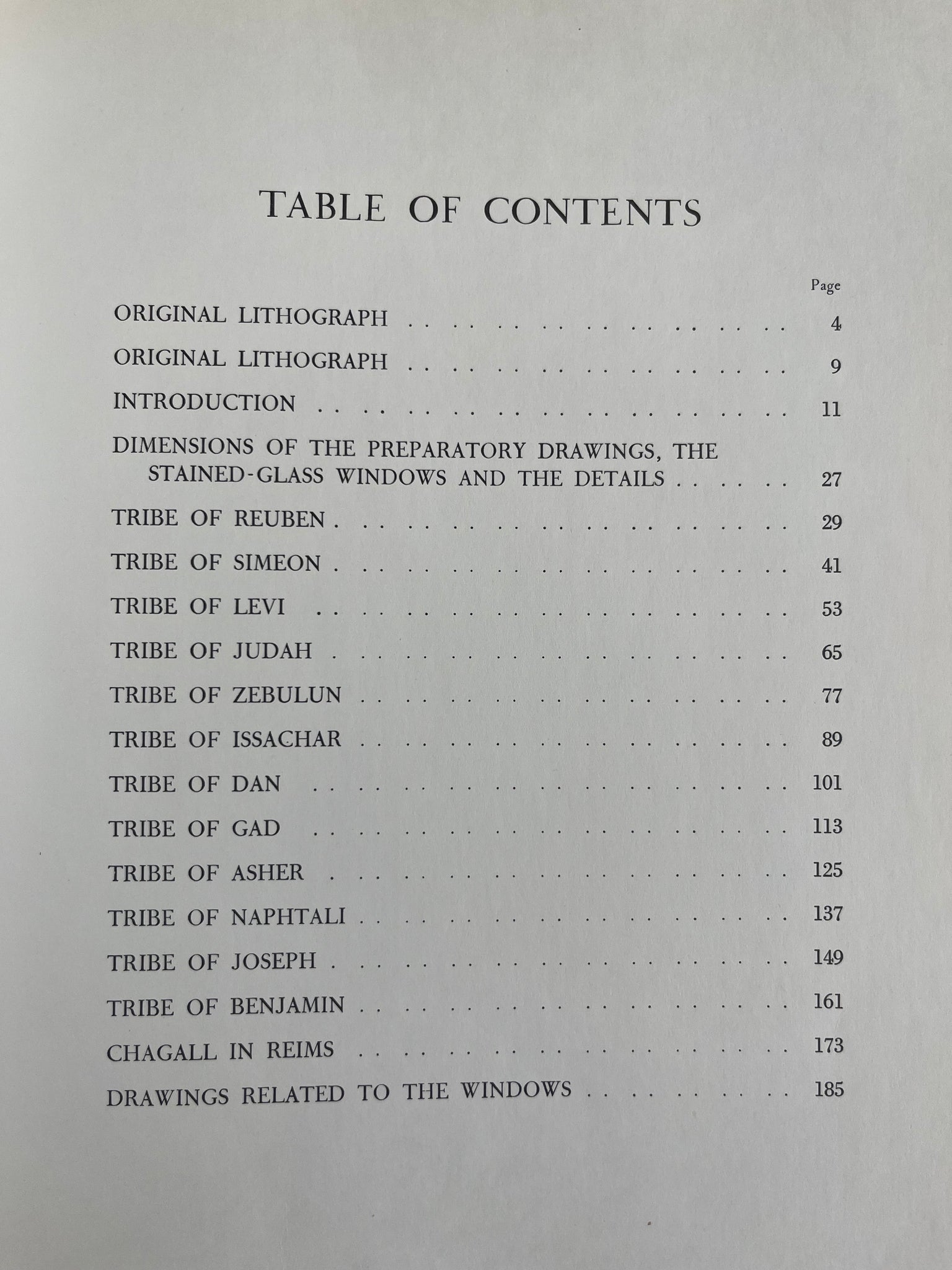 Chagall's designs for the twelve stained glass windows of the Hadassah-Hebrew University Medical Center Synagogue in Jerusalem, each window representing one of the twelve tribes of Israel. From Chagall's remarks on the morning of the dedication ceremony: "And this, which today is called sacred art, I carried out by thinking equally of the great ancient creations of the Semitic peoples of this region. And I hope that thus I am holding out a hand to friends of culture, to poets and artists of neighboring countries and of all countries."